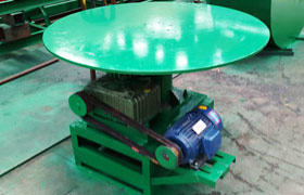 電動(dòng)機(jī)經(jīng)聯(lián)軸器通過(guò)減速機(jī)帶動(dòng)圓盤。圓盤轉(zhuǎn)動(dòng)時(shí),料倉(cāng)內(nèi)的物料隨著圓盤一起移動(dòng),并向出料口的一方移動(dòng),經(jīng)閘門或刮刀排出物料,排出量的大小可用刮刀裝置或閘門來(lái)調(diào)節(jié)。