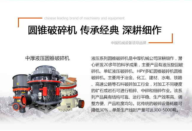 中厚機(jī)械系列液壓圓錐破碎機(jī),能耗低,粒形美觀