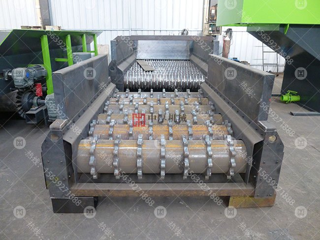 由電機(jī)驅(qū)動(dòng)帶有不規(guī)則的形狀裝置的連動(dòng)軸進(jìn)行翻轉(zhuǎn)運(yùn)動(dòng),篩面由很多根直線排布回轉(zhuǎn)軸承構(gòu)成,在滾軸上有相等的篩盤排布,滾軸通過(guò)齒輪帶動(dòng)輪鏈傳動(dòng)而旋轉(zhuǎn)的,其旋轉(zhuǎn)的的方向與原料流動(dòng)的方向一致,軸與軸之間有間隙,鑲嵌在軸上的不規(guī)則耐磨裝置托起大粒度物料向前運(yùn)動(dòng),因?yàn)楹Y軸是按各不相同的運(yùn)行方向設(shè)計(jì)的,所以當(dāng)材料在運(yùn)行方向較高的地方運(yùn)行時(shí)的速度較快;當(dāng)材料在運(yùn)行方向較低的地方運(yùn)行時(shí)的速度較低緩。兩種各不相同的速度運(yùn)行下的材料,在篩面某一地方相匯時(shí)開(kāi)始做軸向運(yùn)作,如此一來(lái)就使材料均衡性地分布在篩面上,達(dá)到了提高篩分的工作效率,小顆粒物料則落入分離機(jī)底部由皮帶機(jī)送出。