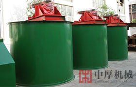 2、攪拌貯槽。用于礦漿攪拌和貯存,不僅在選廠應(yīng)用,其他行業(yè)也使用。在黑色有色精礦及煤漿采用采用管道輸送,也需采用大型攪拌貯槽。